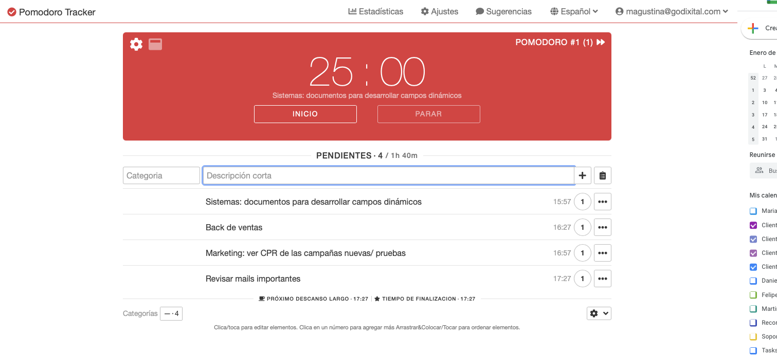 Así se ve el Pomodoro Tracker que utilizo todos los días para trabajar